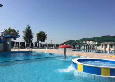 - una grande vasca per il relax e il benessere di tutto il corpo con idromassaggio e una vasca più piccola con sedute per godersi in comodità tutte le qualità della nostra acqua termale.