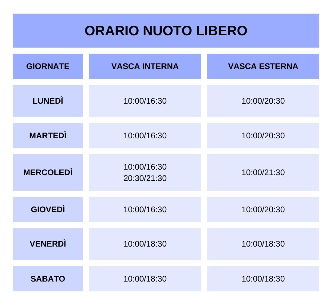 Tariffe nuoto libero